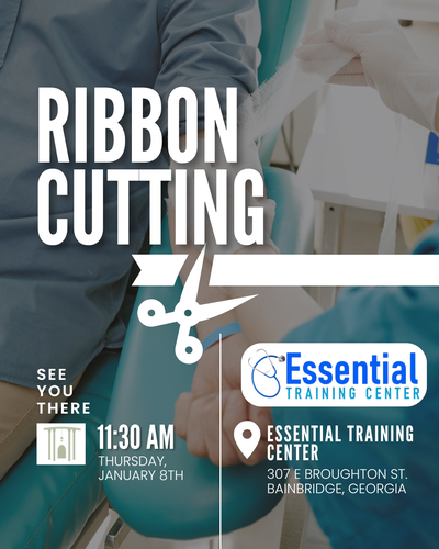 The Bainbridge-Decatur County Chamber of Commerce invites the community to join us for a ribbon cutting ceremony celebrating the grand opening of Essential Training Center on Thursday, January 8, 2025, at 11:30 a.m. The business is located at 307 E. Broughton Street in Bainbridge.